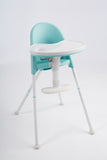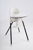 The curving ergonomic shape of the high chair looks sleek in any kitchen and comes in both Black/ White, and Teal/ White.