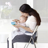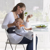 The LapBaby fits most waist sizes and is adjustable. It comes with a soft drop cloth for spills during mealtime, and a pacifier/toy tether, to keep their favorite item close at hand. The LapBaby accommodates infants with up to a 17-inch waist comfortably.